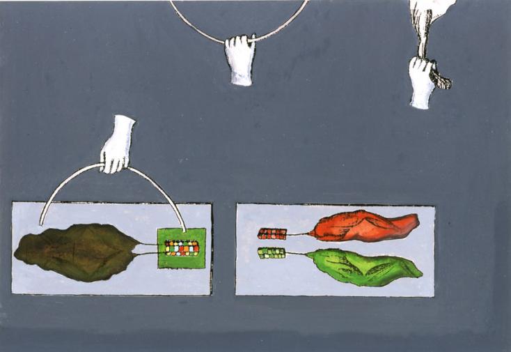 <MODELLE ZEICHNUNGEN BILDERgalvanisch, Übermalung eines Druckes der Encyclopédie aus BAU II, Berlin 1999>