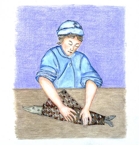 <Transfereinwickeln (wrapping), drawing with combinations of Lublin motifs and from: Diderot and d'Alembert, Encyclopédie, Paris 1751, Lublin/ Łódź 2012
